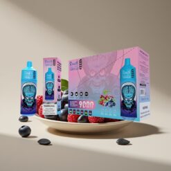 Wholesale Suomi RandM Fumot Tornado 9000 Puffs Mustikka Vadelma Mesh Coil RGB Näyttö 18ml 850mAh