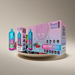 Wholesale Suomi RandM Fumot Tornado 9000 Puffs Mansikka/Vadelma Mesh Coil RGB Näyttö Rechargeable