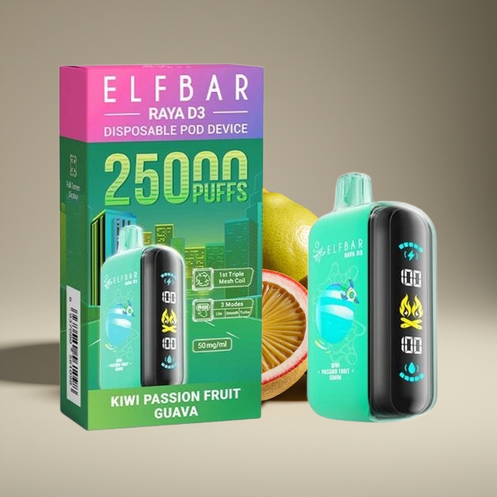 ELF BAR RAYA D3 25000 Pussit Kiivi Passiohedelmä Guava 23ml Type-C