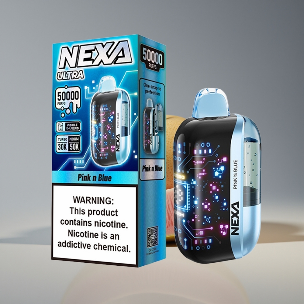 Wholesale Suomi NEXA Ultra 50000 Puffit 20ml 800mAh 5% Nikotiini Pinkki ja Sininen 3D Näyttö Type-C