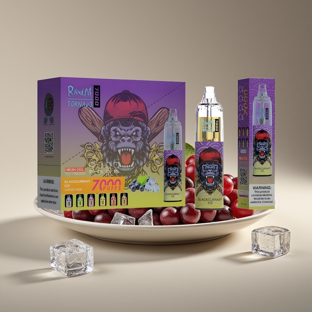 Wholesale Suomi RandM Fumot Tornado 7000 Puffs 14ml Mustajää RGB Type-C Ilmasäädin