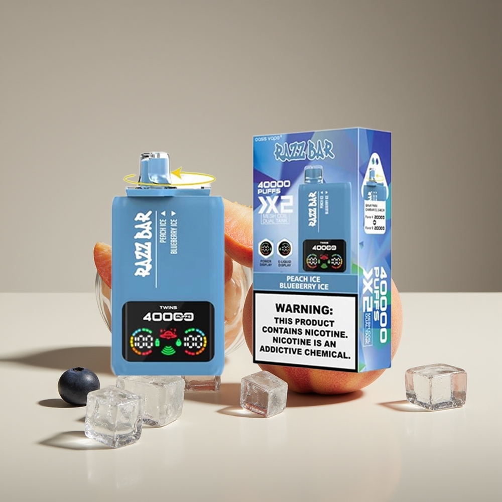 Wholesale Suomi Razz Bar 40000 Puffs Persikka Jää – Mustikka Jää Näyttö Verkkokäämitys 1.0Ohm 2 650mAh Type-C