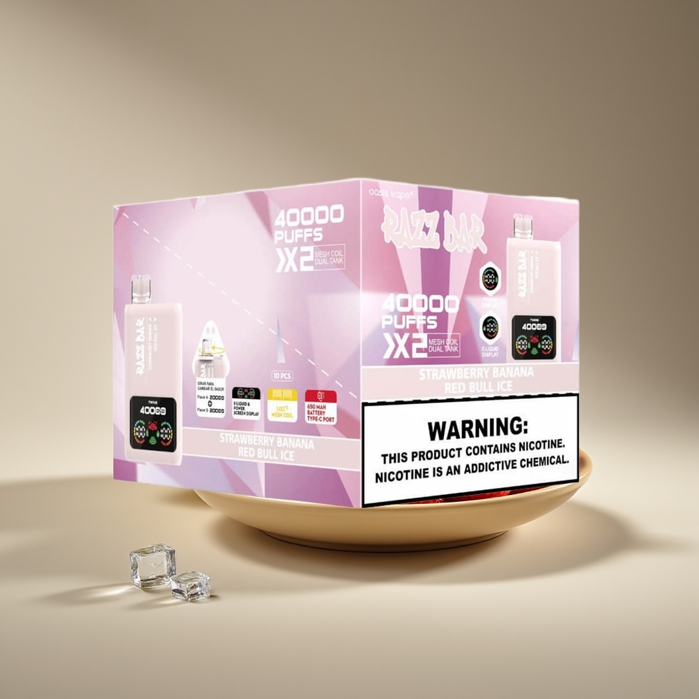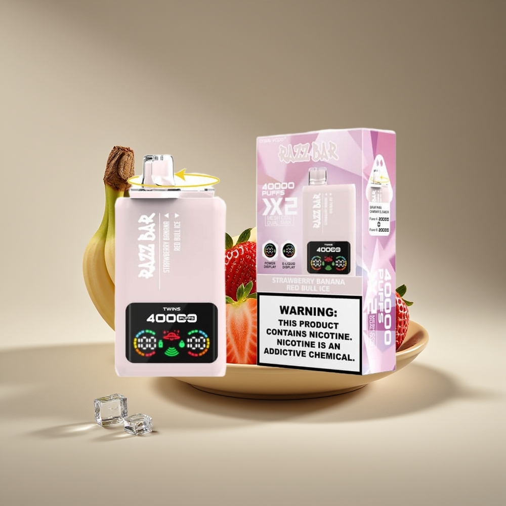 Wholesale Suomi Razz Bar 40000 Tupakka Mansikka-Banaani – Punainen Härkä Jää Näyttö 1.0Ohm 2 Type-C