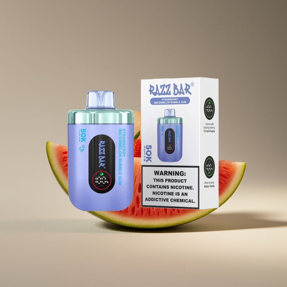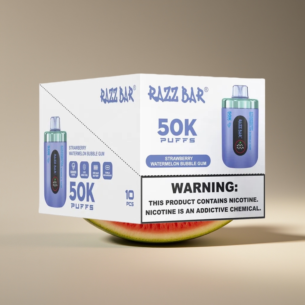 Wholesale Suomi Razz Bar 50K Puffs Kertakäyttöinen Höyrystin Mansikka-Arbuusi-Kuplakumi 1.0 Ohm Mesh 650mAh Type-C 2%