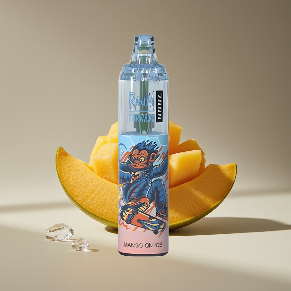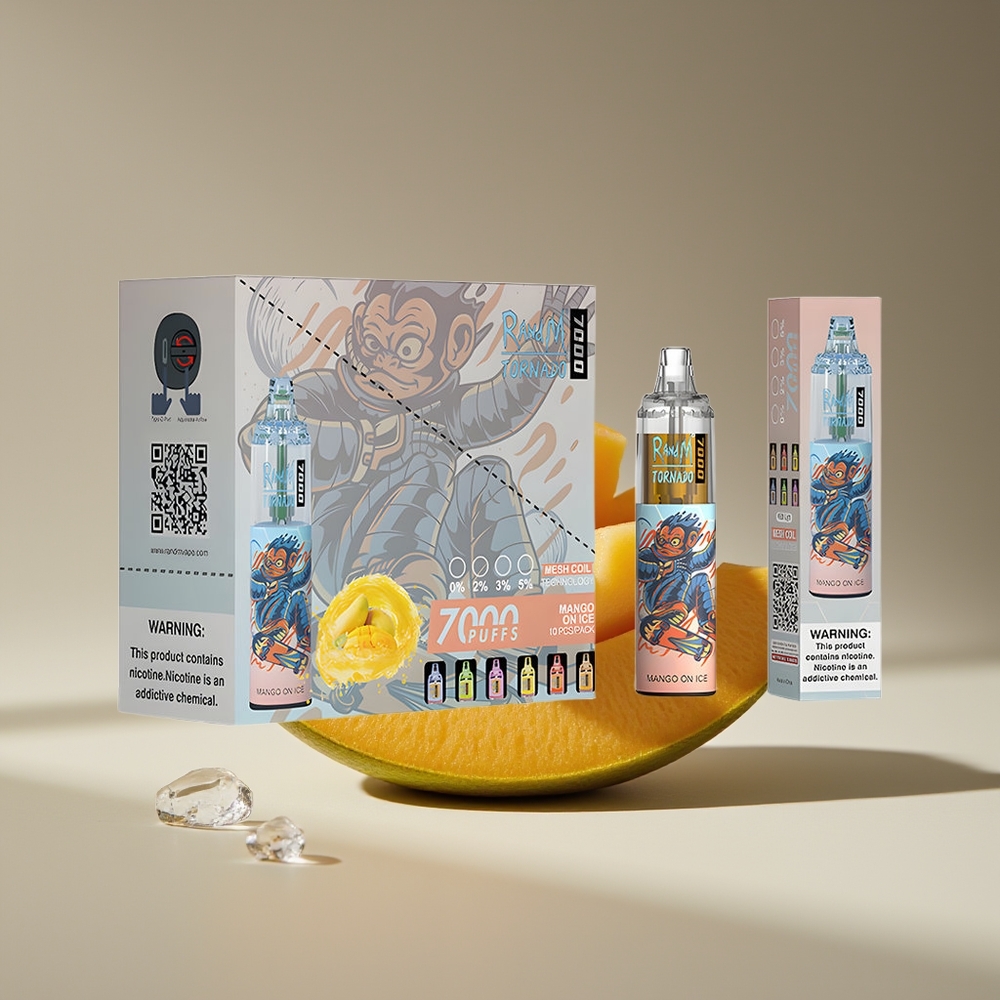 Wholesale Suomi RandM Fumot Tornado 7000 Puffs 14ML Mango Jäällä Mesh Coil Type-C RGB IlmanSäädin