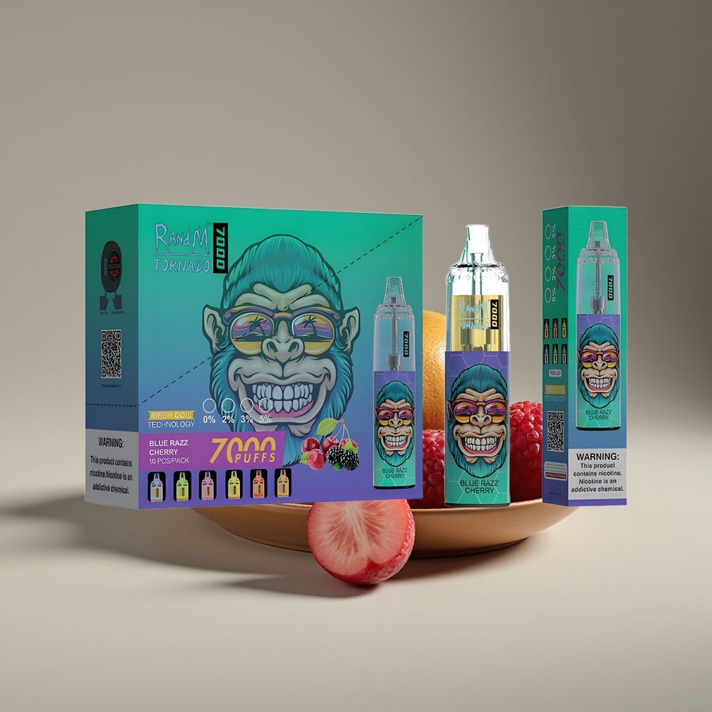 Wholesale Suomi RandM Fumot Tornado 7000 Puffs 14ml Sininen Vadelma Kirsikka Mesh Coil Type-C RGB