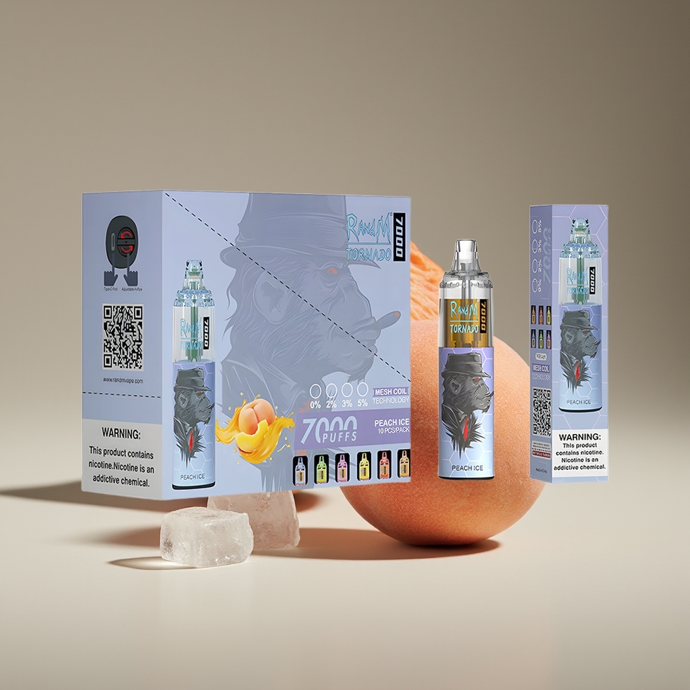 Wholesale Suomi RandM Fumot Tornado 7000 Pussit Persikka Jää 14ML 850MAH Type-C RGB Mesh Ilmasäätö